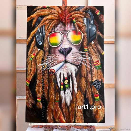 ИНТЕРЬЕРНЫЕ БОЛЬШИЕ КАРТИНЫ МАСЛОМ НА ЗАКАЗ. 🎨 Картина для интерьера Большая 60 на 90 см. интерьерная картина: "Лев с Дредами". Полностью Ручная работа Профессиональных Художников.