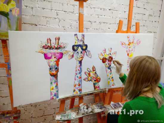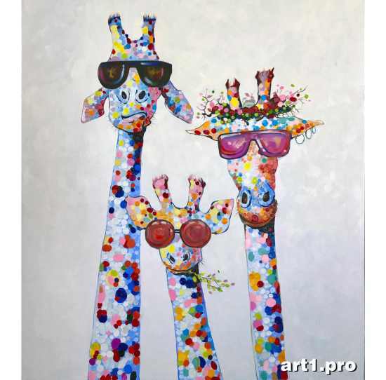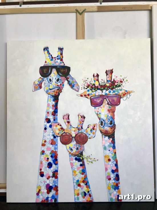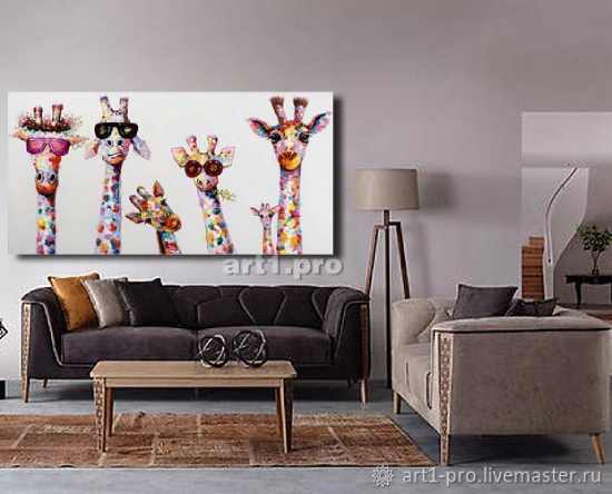 ИНТЕРЬЕРНЫЕ БОЛЬШИЕ КАРТИНЫ МАСЛОМ НА ЗАКАЗ. 🎨 Картина для интерьера Большая 80 на 100 см. интерьерная картина: "Веселые Жирафики". Картины современные, яркие и живописные. Достойно украсят любой интерьер. А благодаря большому размеру, очень эффектные! Над каждой картиной работает творческое объединение профессиональных художников-это позволяет добиваться потрясающего результата! Выполним в любых размерах до 2-х метров. Перед отправкой делаем фото готовой работы и отправляем Заказчику для одобрения. Натуральный холст на подрамнике. Масляные краски. Галерейная натяжка. Картину аккуратно упаковываем в пузырчатую пленку и помещаем в коробку для сохранности при транспортировке. Добавьте в интерьер своей квартиры или дома яркий незабываемый превосходный элемент - живописную картину! Бесплатная доставка до транспортной компании! Тел.: 8(918) 9780000