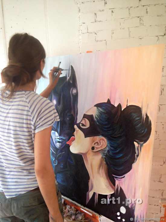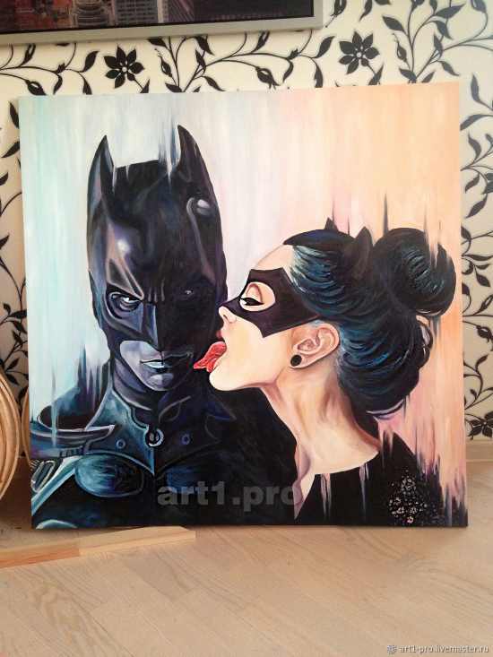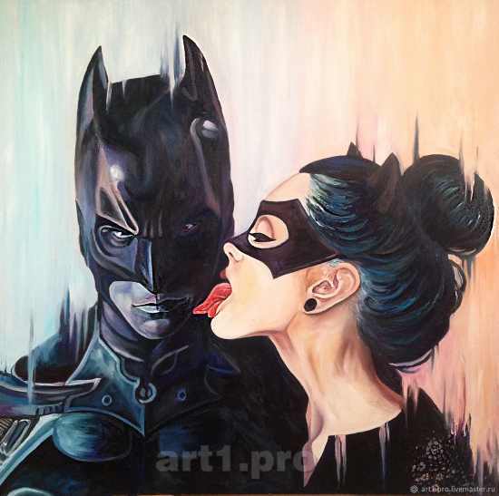 ИНТЕРЬЕРНЫЕ БОЛЬШИЕ КАРТИНЫ МАСЛОМ В НАЛИЧИИ. 🎨 Картина для интерьера Большая 100 на 100 см. интерьерная картина: "Бэтмен и Женщина Кошка". Картины современные, яркие и живописные. Достойно украсят любой интерьер. А благодаря большому размеру, очень эффектные! Над каждой картиной работает творческое объединение профессиональных художников-это позволяет добиваться потрясающего результата! Выполним в любых размерах до 2-х метров. Предоплата 1тыс. руб. Перед отправкой делаем фото готовой работы и отправляем Заказчику для одобрения. Натуральный холст на подрамнике. Масляные краски. Галерейная натяжка. Картину аккуратно упаковываем в пузырчатую пленку и помещаем в коробку для сохранности при транспортировке. Добавьте в интерьер своей квартиры или дома яркий незабываемый превосходный элемент - живописную картину! Бесплатная доставка до транспортной компании! WhatsApp Тел.: 8(918) 9780000