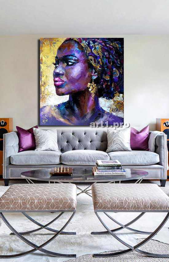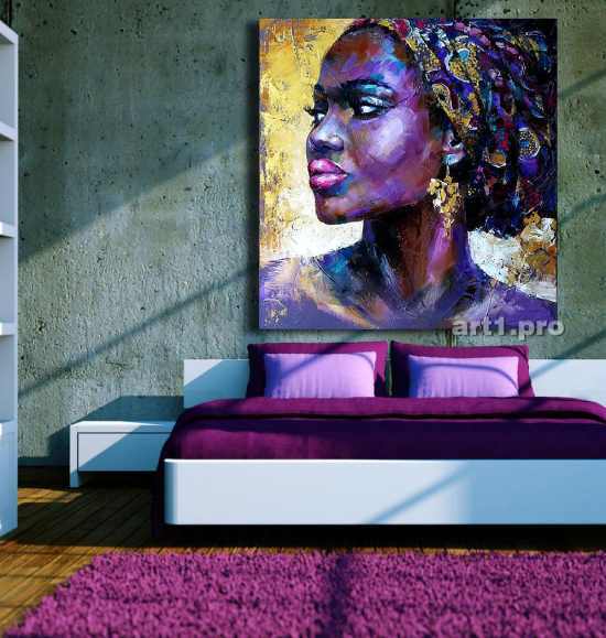 ИНТЕРЬЕРНЫЕ БОЛЬШИЕ КАРТИНЫ МАСЛОМ НА ЗАКАЗ. 🎨 Картина для интерьера Большая 100 на 120 см. интерьерная картина: "Африканка". Полностью Ручная работа Профессиональных Художников. Решаем проблему пустых стен и скучных интерьеров! Картины современные, яркие и живописные. Достойно украсят любой интерьер. А благодаря большому размеру, очень эффектные! Выполним в любых размерах до 2-х метров. Предоплата 10% Натуральный холст (лен+хлопок 400 г/м2) натянут на деревянный подрамник, шириной 5см.Масляные краски. Галерейная натяжка. Картину очень надежно упаковываем. Доставка по всей России. Добавьте в интерьер своей квартиры или дома яркий незабываемый превосходный элемент - живописную картину! Бесплатная доставка до транспортной компании! Тел.: WhatsApp: 8(918) 978-00-00