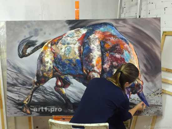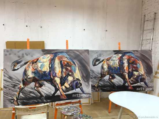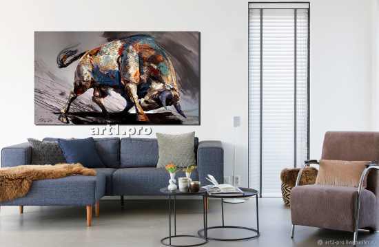 ИНТЕРЬЕРНЫЕ БОЛЬШИЕ КАРТИНЫ МАСЛОМ НА ЗАКАЗ. 🎨 Картина для интерьера Большая 160 на 100 см. интерьерная картина: "Бык". Картины современные, яркие и живописные. Достойно украсят любой интерьер. А благодаря большому размеру, очень эффектные! Над каждой картиной работает творческое объединение профессиональных художников-это позволяет добиваться потрясающего результата! Выполним в любых размерах до 3-х метров. Предоплата 1тыс. руб. Перед отправкой делаем фото готовой работы и отправляем Заказчику для одобрения. Натуральный холст на подрамнике. Масляные краски. Галерейная натяжка. Картину аккуратно упаковываем в пузырчатую пленку и помещаем в коробку для сохранности при транспортировке. Добавьте в интерьер своей квартиры или дома яркий незабываемый превосходный элемент - живописную картину! Бесплатная доставка до транспортной компании! Тел.: 8(918) 9780000