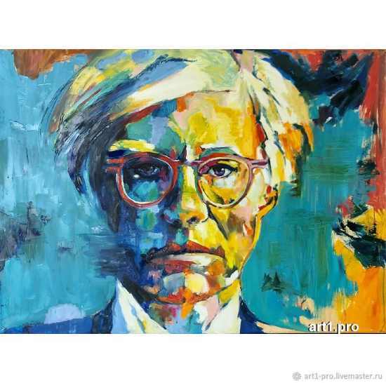 ИНТЕРЬЕРНЫЕ БОЛЬШИЕ КАРТИНЫ МАСЛОМ НА ЗАКАЗ. 🎨 Картина для интерьера 80 на 60 см. интерьерная картина: "Энди Уорхол".Полностью Ручная работа Профессиональных Художников.