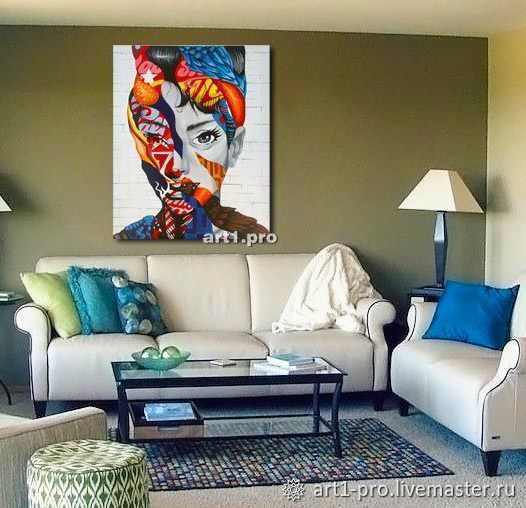 ИНТЕРЬЕРНЫЕ БОЛЬШИЕ КАРТИНЫ МАСЛОМ НА ЗАКАЗ. 🎨 Картина для интерьера Большая 80 на 100 см. интерьерная картина: "Одри Хепберн". Полностью Ручная работа Профессиональных Художников. Картины современные, яркие и живописные. Достойно украсят любой интерьер. А благодаря большому размеру, очень эффектные! Над каждой картиной работает творческое объединение профессиональных художников-это позволяет добиваться потрясающего результата! Выполним в любых размерах до 2-х метров. Натуральный грунтованный холст на подрамнике. Масляные краски. Галерейная натяжка. Картину аккуратно упаковываем в пузырчатую пленку и помещаем в коробку для сохранности при транспортировке. Добавьте в интерьер своей квартиры или дома яркий незабываемый превосходный элемент - живописную картину! Бесплатная доставка до транспортной компании! Тел.Whatsapp: 8(918) 9780000