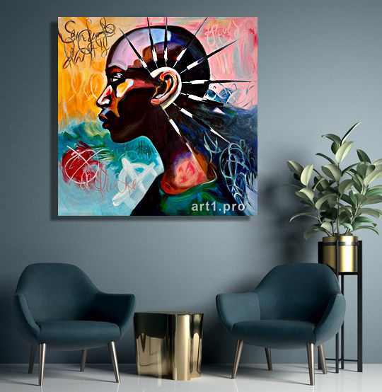 ИНТЕРЬЕРНЫЕ БОЛЬШИЕ КАРТИНЫ МАСЛОМ НА ЗАКАЗ. 🎨 Картина для интерьера Большая 100 на 100 см. интерьерная картина: "Африканка". Картины современные, яркие и живописные. Достойно украсят любой интерьер. А благодаря большому размеру, очень эффектные! Над каждой картиной работает творческое объединение профессиональных художников-это позволяет добиваться потрясающего результата! Выполним в любых размерах до 2-х метров. Предоплата 10% Перед отправкой делаем фото готовой работы и отправляем Заказчику для одобрения. Натуральный холст на подрамнике. Масляные краски. Галерейная натяжка. Картину аккуратно упаковываем в пузырчатую пленку и помещаем в коробку для сохранности при транспортировке. Добавьте в интерьер своей квартиры или дома яркий незабываемый превосходный элемент - живописную картину! Бесплатная доставка до транспортной компании! Тел.: 8(918) 9780000
