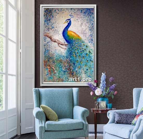 ИНТЕРЬЕРНЫЕ БОЛЬШИЕ КАРТИНЫ МАСЛОМ НА ЗАКАЗ. 🎨 Картина для интерьера Большая 100 на 130 см. интерьерная картина: "Павлин". Полностью Ручная работа Профессиональных Художников. Решаем проблему пустых стен и скучных интерьеров! Картины современные, яркие и живописные. Достойно украсят любой интерьер. А благодаря большому размеру, очень эффектные! Выполним в любых размерах до 2-х метров. Натуральный холст (лен+хлопок 400 г/м2) натянут на деревянный подрамник, шириной 5см.Масляные краски. Галерейная натяжка. Картину очень надежно упаковываем. Доставка по всей России. Добавьте в интерьер своей квартиры или дома яркий незабываемый превосходный элемент - живописную картину! Бесплатная доставка до транспортной компании! Тел.: WhatsApp: 8(918) 978-00-00