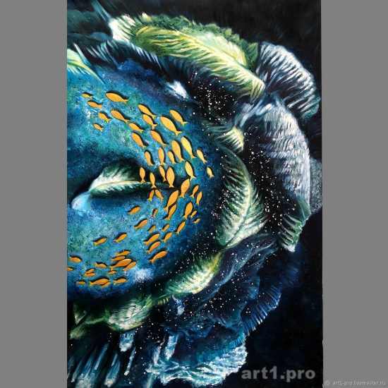 ИНТЕРЬЕРНЫЕ БОЛЬШИЕ КАРТИНЫ МАСЛОМ НА ЗАКАЗ. 🎨 Картина для интерьера Большая 100 на 100 см. интерьерная картина: "Океан Мыслей". Картины современные, яркие и живописные. Достойно украсят любой интерьер. А благодаря большому размеру, очень эффектные! Над каждой картиной работает творческое объединение профессиональных художников-это позволяет добиваться потрясающего результата! Натуральный холст на подрамнике. Масляные краски. Галерейная натяжка. Картину аккуратно упаковываем в пузырчатую пленку и помещаем в коробку для сохранности при транспортировке. Добавьте в интерьер своей квартиры или дома яркий незабываемый превосходный элемент - живописную картину! Бесплатная доставка до транспортной компании! WhatsApp Тел.: 8(918) 9780000
