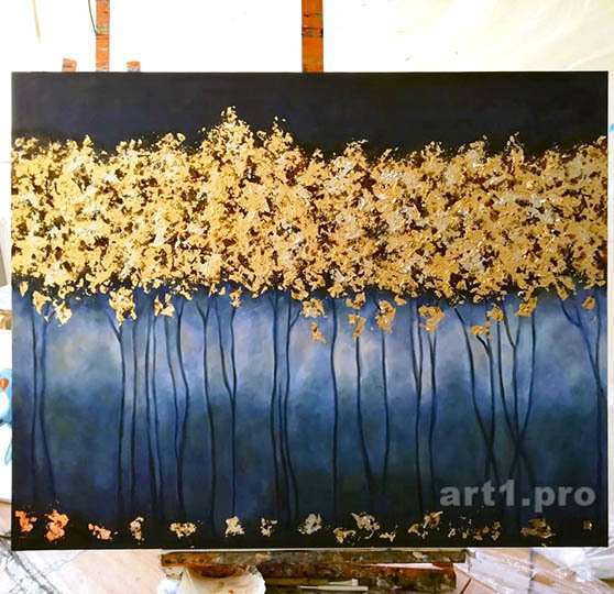 ИНТЕРЬЕРНЫЕ БОЛЬШИЕ КАРТИНЫ МАСЛОМ НА ЗАКАЗ. 🎨 Картина для интерьера 100 на 80 см. интерьерная картина: "Золотой Лес". Полностью Ручная работа Профессиональных Художников.