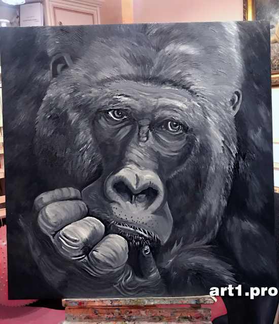 ИНТЕРЬЕРНЫЕ БОЛЬШИЕ КАРТИНЫ МАСЛОМ НА ЗАКАЗ. 🎨 Картина для интерьера Большая 100 на 100 см. интерьерная картина: "Думающая Горилла". Картины современные, яркие и живописные. Достойно украсят любой интерьер. А благодаря большому размеру, очень эффектные! Над каждой картиной работает творческое объединение профессиональных художников-это позволяет добиваться потрясающего результата! Натуральный холст на подрамнике. Масляные краски. Галерейная натяжка. Картину аккуратно упаковываем в пузырчатую пленку и помещаем в коробку для сохранности при транспортировке. Добавьте в интерьер своей квартиры или дома яркий незабываемый превосходный элемент - живописную картину! Бесплатная доставка до транспортной компании! WhatsApp Тел.: 8(918) 9780000