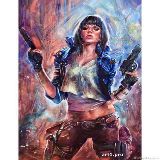 ИНТЕРЬЕРНЫЕ БОЛЬШИЕ КАРТИНЫ МАСЛОМ НА ЗАКАЗ. 🎨 Картина для интерьера Большая 100 на 130 см. интерьерная картина: "Девушка с пистолетами". Полностью Ручная работа Профессиональных Художников.