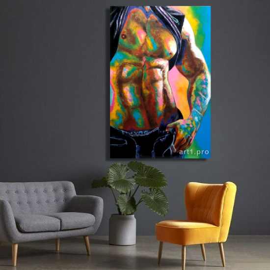 ИНТЕРЬЕРНЫЕ БОЛЬШИЕ КАРТИНЫ МАСЛОМ НА ЗАКАЗ. 🎨 Картина для интерьера Большая 75 на 115 см. интерьерная картина: "Мужской Торс". Картины современные, яркие и живописные. Достойно украсят любой интерьер. А благодаря большому размеру, очень эффектные! Над каждой картиной работает творческое объединение профессиональных художников-это позволяет добиваться потрясающего результата! Выполним в любых размерах до 2-х метров. Перед отправкой делаем фото готовой работы и отправляем Заказчику для одобрения. Натуральный холст на подрамнике. Масляные краски. Галерейная натяжка. Картину аккуратно упаковываем в пузырчатую пленку и помещаем в коробку для сохранности при транспортировке. Добавьте в интерьер своей квартиры или дома яркий незабываемый превосходный элемент - живописную картину! Бесплатная доставка до транспортной компании! Тел.: 8(918) 9780000