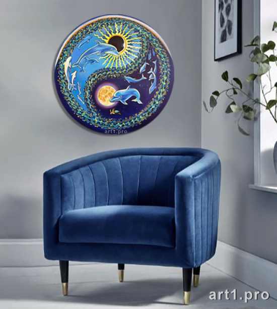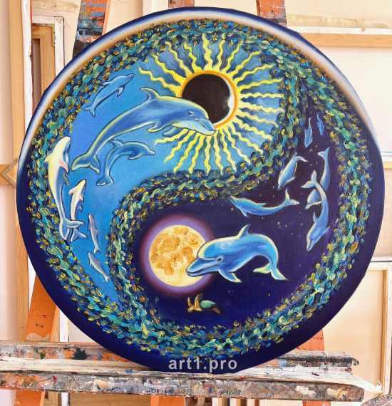 ИНТЕРЬЕРНЫЕ БОЛЬШИЕ КАРТИНЫ МАСЛОМ В НАЛИЧИИ. 🎨 Картина для интерьера d=50 см. Интерьерная картина: "Семья Дельфинов. День и Ночь". Картины современные, яркие и живописные. Достойно украсят любой интерьер. А благодаря большому размеру, очень эффектные! Над каждой картиной работает творческое объединение профессиональных художников-это позволяет добиваться потрясающего результата! Натуральный холст на подрамнике. Масляные краски. Галерейная натяжка. Картину аккуратно упаковываем в пузырчатую пленку и помещаем в коробку для сохранности при транспортировке. Добавьте в интерьер своей квартиры или дома яркий незабываемый превосходный элемент - живописную картину! Бесплатная доставка до транспортной компании! WhatsApp Тел.: 8(918) 9780000