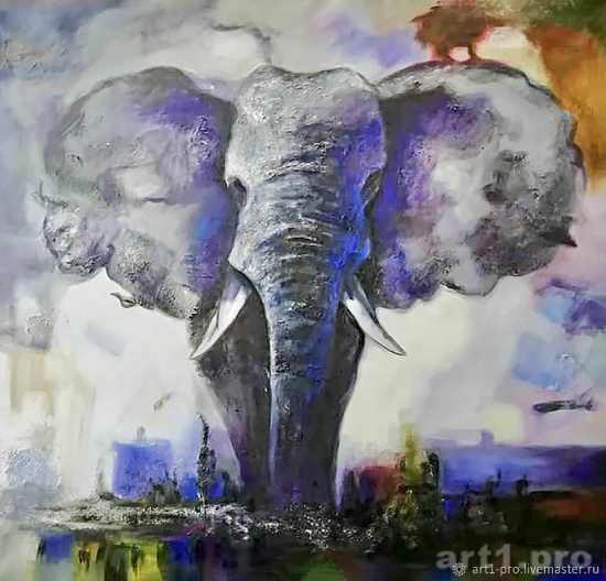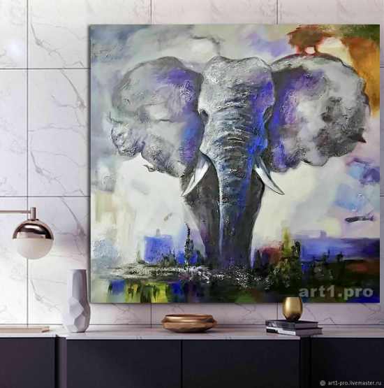 ИНТЕРЬЕРНЫЕ БОЛЬШИЕ КАРТИНЫ МАСЛОМ НА ЗАКАЗ. 🎨 Картина для интерьера Большая 100 на 100 см. интерьерная картина: "Слон". Полностью Ручная работа Профессиональных Художников. Решаем проблему пустых стен и скучных интерьеров! Картины современные, яркие и живописные. Достойно украсят любой интерьер. А благодаря большому размеру, очень эффектные! Выполним в любых размерах до 2-х метров. Натуральный холст (лен+хлопок 400 г/м2) натянут на деревянный подрамник, шириной 5см.Масляные краски. Галерейная натяжка. Картину очень надежно упаковываем. Доставка по всей России. Бесплатная доставка до транспортной компании! Тел.: WhatsApp: 8(918) 978-00-00