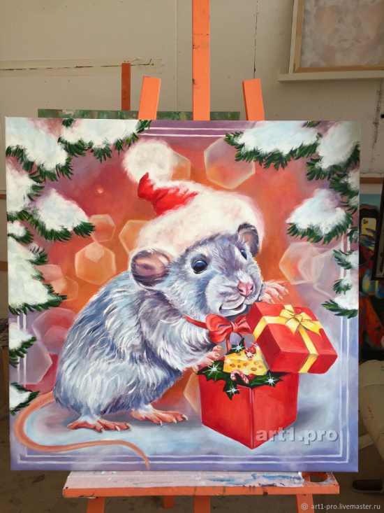 ИНТЕРЬЕРНЫЕ БОЛЬШИЕ КАРТИНЫ МАСЛОМ НА ЗАКАЗ. 🎨 Картина для интерьера Большая 80 на 80 см. интерьерная картина: "Новогодний Мышонок". Полностью Ручная работа Профессиональных Художников. Картины современные, яркие и живописные. Достойно украсят любой интерьер. А благодаря большому размеру, очень эффектные! Над каждой картиной работает творческое объединение профессиональных художников-это позволяет добиваться потрясающего результата! Выполним в любых размерах до 2-х метров. Натуральный грунтованный холст на подрамнике. Масляные краски. Галерейная натяжка. Картину аккуратно упаковываем в пузырчатую пленку и помещаем в коробку для сохранности при транспортировке. Добавьте в интерьер своей квартиры или дома яркий незабываемый превосходный элемент - живописную картину! Бесплатная доставка до транспортной компании! Тел.: WhatsApp 8(918) 9780000