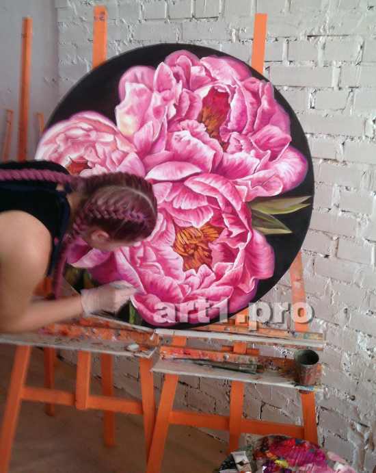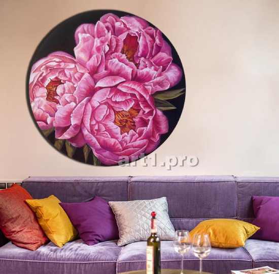 ИНТЕРЬЕРНЫЕ БОЛЬШИЕ КАРТИНЫ МАСЛОМ НА ЗАКАЗ. 🎨 Картина для интерьера Большая d= 90 см. интерьерная картина: "Пион". Полностью Ручная работа Профессиональных Художников. Решаем проблему пустых стен и скучных интерьеров! Картины современные, яркие и живописные. Достойно украсят любой интерьер. А благодаря большому размеру, очень эффектные! Выполним в любых размерах до 2-х метров. Натуральный холст (лен+хлопок 400 г/м2) натянут на деревянный подрамник, шириной 5см.Масляные краски. Галерейная натяжка. Картину очень надежно упаковываем. Доставка по всей России. Добавьте в интерьер своей квартиры или дома яркий незабываемый превосходный элемент - живописную картину! Бесплатная доставка до транспортной компании! Тел.: WhatsApp: 8(918) 978-00-00