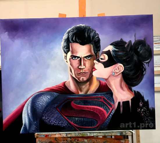 ИНТЕРЬЕРНЫЕ БОЛЬШИЕ КАРТИНЫ МАСЛОМ В НАЛИЧИИ. 🎨 Картина для интерьера Большая 60 на 80 см. интерьерная картина: "СуперМен и Женщина Кошка". Картины современные, яркие и живописные. Достойно украсят любой интерьер. А благодаря большому размеру, очень эффектные! Над каждой картиной работает творческое объединение профессиональных художников-это позволяет добиваться потрясающего результата! Натуральный холст на подрамнике. Масляные краски. Галерейная натяжка. Картину аккуратно упаковываем в пузырчатую пленку и помещаем в коробку для сохранности при транспортировке. Добавьте в интерьер своей квартиры или дома яркий незабываемый превосходный элемент - живописную картину! Бесплатная доставка до транспортной компании! WhatsApp Тел.: 8(918) 9780000