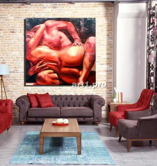 ИНТЕРЬЕРНЫЕ БОЛЬШИЕ КАРТИНЫ МАСЛОМ НА ЗАКАЗ. 🎨 Картина для интерьера Большая 100 на 100 см. интерьерная картина: "Страсть". Картины современные, яркие и живописные. Достойно украсят любой интерьер. А благодаря большому размеру, очень эффектные! Над каждой картиной работает творческое объединение профессиональных художников-это позволяет добиваться потрясающего результата! Натуральный холст на подрамнике. Масляные краски. Галерейная натяжка. Картину аккуратно упаковываем в пузырчатую пленку и помещаем в коробку для сохранности при транспортировке. Добавьте в интерьер своей квартиры или дома яркий незабываемый превосходный элемент - живописную картину! Бесплатная доставка до транспортной компании! WhatsApp Тел.: 8(918) 9780000